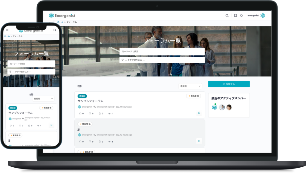 Emergenistは日々変化する現場の知識と経験を、医師同士がリアルタイムに共有できる実名制プラットフォームです。