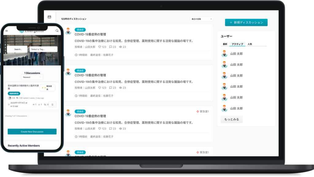 Emergenistは日々変化する現場の知識と経験を、医師同士がリアルタイムに共有できる実名制プラットフォームです。